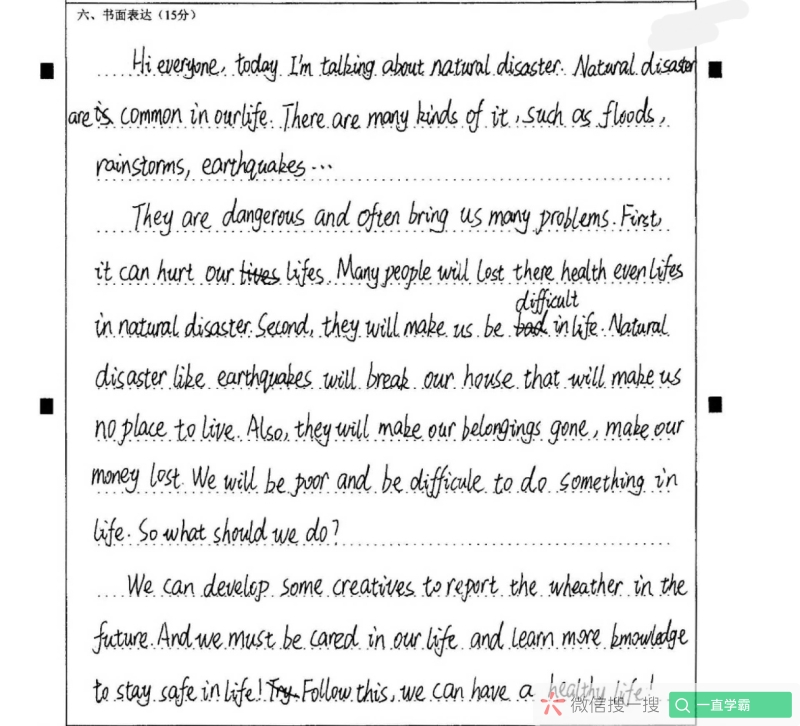 逐词逐句精细批改,不规范表达改进,全文润色,严格评分。