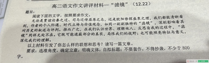 高中语文作文精批10篇 滤镜在历史上,“滤镜”往往带着浓重的个人思想。三国中的蜀汉,诸葛亮六出祁山,鞠躬尽瘁,却仍战胜不了曹魏,史学家纷纷为其惋惜,可他们却忽略了分久必合的客观历史规律,但滤镜却并非都是负面作用。滤镜是我们个人对事件的一种美化,这在心理学上是一种自我保护机制,我们往往会将自己接受不了的事,通过言语或心理的方式将它暗示到自己能接受的地步,可这层心理上的“滤镜”并不能解决问题,它反而阻碍于我们面对事情的勇敢,延缓了我们解决问题的进度,长久以往,我们便再也无法脱下这层滤镜,找到真正的自己。滤镜也是我们对某些人某些事的认同。汉朝司马迁与屈原同病相怜,作《屈原列传》既表达对先贤的遗憾,亦抒发自己的愁绪;伯牙和子期,一个是琴师,一个是樵子,却因一曲高山流水走到一起;刘关张三兄弟桃园结义,势要匡扶汉室,我们可以说是滤镜的作用,它让互相欣赏之人的闪光点无限放大。正如俗语:情人眼里出西施。滤镜的意义并不是绝对的,它是相对的。当今社会上的某些人,看到什么直播卖货,以老年人为主要对象的商店,抱着鄙夷心理,他们认为看直播给奖励再引导老年人买东西像极了传销组织,只用蝇头小利却挽起了十足的利益,可他们眼中的“滤镜”并没有告诉他们,这些货品都是助农产品,也许只要全部卖掉就能让一个贫困的家庭不必担心明日的食物,也许就能让一个盲童多一丝复明的希望。滤镜,有着其独特的两面性,它既不像有色眼镜那么狭隘,也不像无色眼镜那么宽容。然而,它却是这所有之中最真实的。一个人之所以是个人,是因为有笑,有泪,有五感。相同时,滤镜可好,可坏。它反映我们人类最本质的特点——差异性。我们不必因为自身看事物有滤镜而惭愧,于孔孟之道,也不必为了没有滤镜而沾沾自喜。重要的不是滤镜,而是滤镜后的一颗心。愿这个世界上的所有人都可以客观对待滤镜,不以物喜,不以己悲。 学霸喵_625 2026-01-18 1 评论 0 喜欢