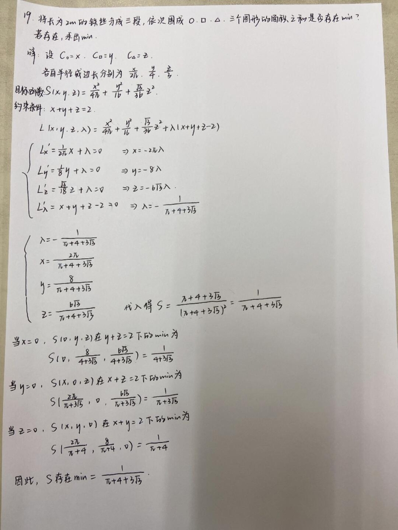 不是,你第一题为啥要讨论xyz分别等于0啊,按照题意,三个图形周长不应该都存在吗,你都讨论这个了,我可不可以只围一个图形?