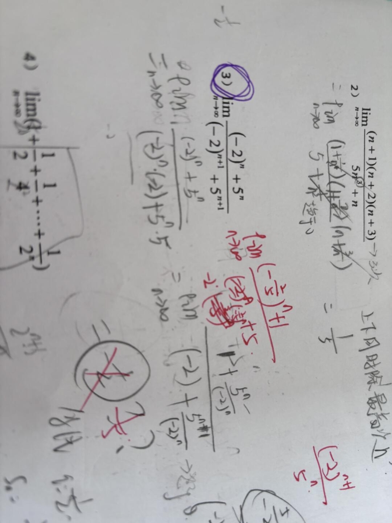 因为负二的n次幂分之五的n次幂,消不掉🤔而5的恩赐密分之负二的恩赐秘,可以为零😉