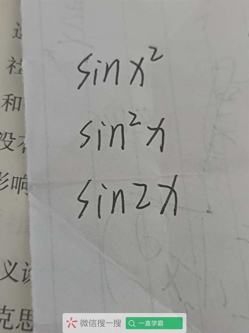 都是复合函数求导,复合函数就是外导乘内导,第一个你就当成y=sint和t=x^2的复合函数,求导也就是cosx^2*2x,第二个当成y=t^2和t=sinx的复合函数,求导也就是2sinxcosx=sin2x,第三个当成y=sint和t=2x的复合函数,求导也就是cos2x*2