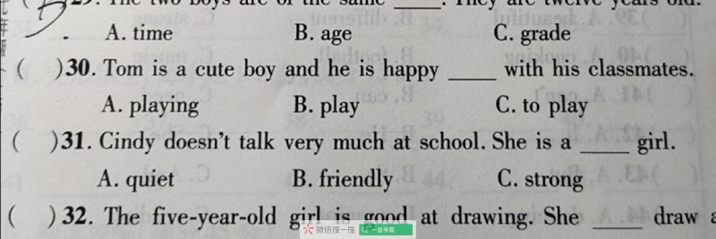 选C,A在语法上也没错。be happy to do乐于做(喜欢做),be happy doing 做某件事时很开心(有快乐的情绪)这里 汤姆是个可爱的男孩,说明这句话是对汤姆的介绍,后面说他喜欢和同学玩,逻辑更通顺句子更连贯。如果只有后半句则AC都可以。这个如果是中学英语题的话,直接选C,这是中学语法的考点。