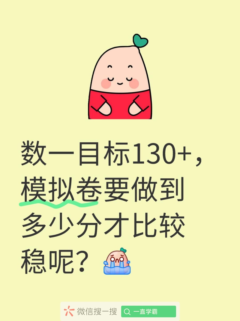 不考虑卷子难度,保证130 ,我感觉往年真题应该满分,简单的模拟卷140 ,难的模拟卷稳定130 吧,是我没想过的分数😌 加油😉