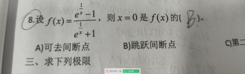 2024-11-05 考研上岸搭子 5 评论 0 喜欢 分享 迷失的蔚蓝 💙🤖 这个人很懒,还没有简介 查看TA的全部内容 +关注 一直学霸 去发现更多有趣内容 微信扫码打开一直学霸小程序 体验更多「一直学霸」新功能 评论 5 Jerk 2024-11-05 0 x→0 时,e的指数是正无穷,抓大头,f→1 Jerk 2024-11-05 0 x→0-时,e指数是负无穷,所以趋于0,f→-1 喝茶的鱼 2024-11-05 0 左右极限不等就是跳跃间断点,好好去看看各类间断点的定义 作者 迷失的蔚蓝 2024-11-05 0 就是知道怎么求左右极限😌😌😌我求出来不是一样的吗😌😌😌 喝茶的鱼 2024-11-05 0 回复 迷失的蔚蓝: 不一样啊,右极限是1,左极限是-1 我也来讲两句