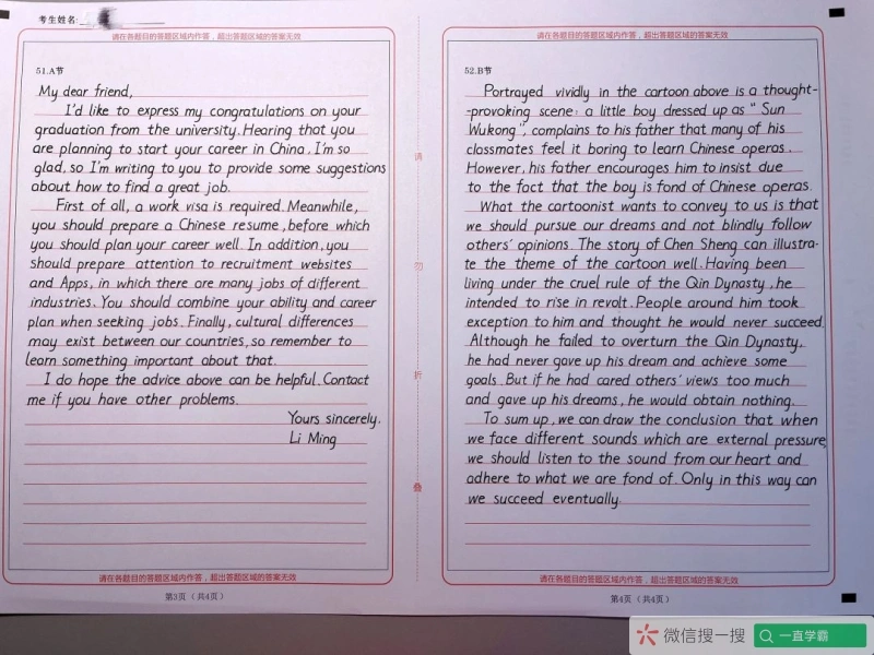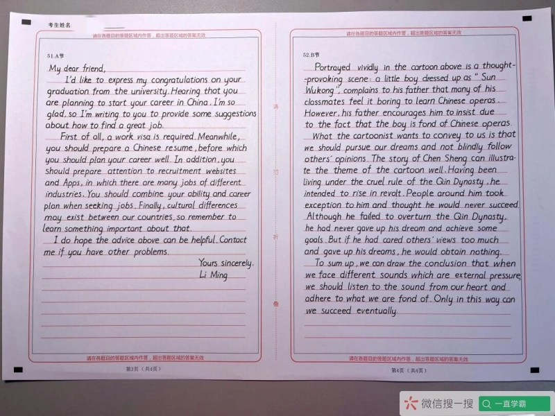 哪个好人能给我推一个合适的答题卡啊✌️买了一套带答题卡的试卷结果发现好像跟考试的完全不一样,小作文跟大作文行数都一样✌️