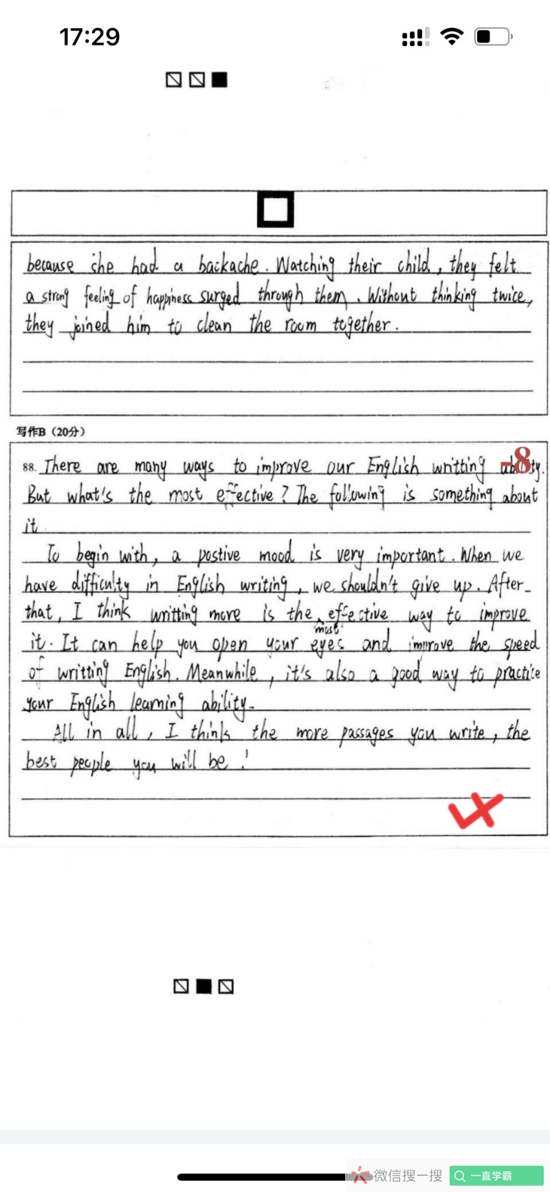 2024-11-09 高中英语作文精批20篇 2 评论 0 喜欢 分享 renee 这个人很懒,还没有简介 查看TA的全部内容 +关注 一直学霸 去发现更多有趣内容 微信扫码打开一直学霸小程序 体验更多「一直学霸」新功能 评论 2 官方助手 2024-11-11 0 已批改,点击底部消息,查看私信。打开文档后,点击右上角的三,可将文档下载到微信 作者 renee 2024-11-15 0 链接在哪里,逗我玩呢 我也来讲两句
