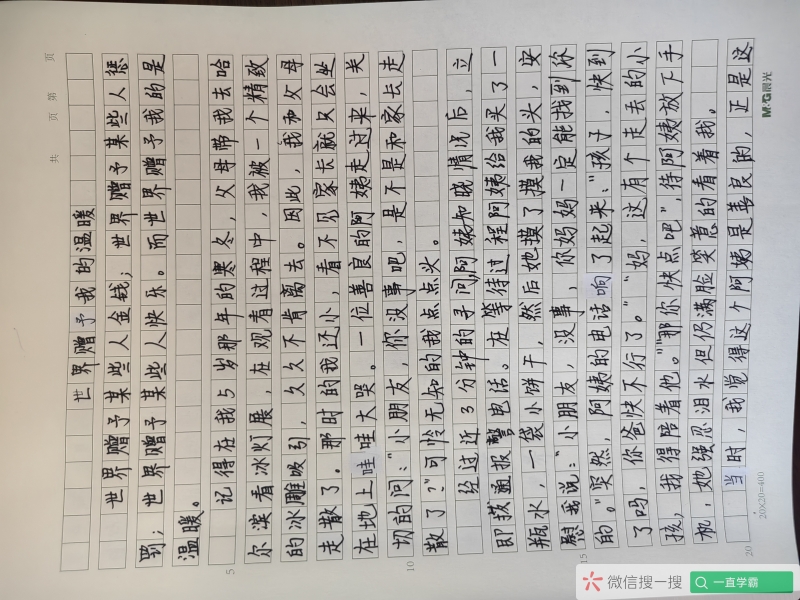 2025-04-19 初中语文作文精批10篇 2 评论 0 喜欢 分享 兜兜 这个人很懒,还没有简介 查看TA的全部内容 +关注 一直学霸 去发现更多有趣内容 微信扫码打开一直学霸小程序 体验更多「一直学霸」新功能 评论 2 官方助手 2025-04-19 0 【金山文档 | WPS云文档】 已批改2200 https://kdocs.cn/l/ctwsYaFYSP6T 官方助手 2025-04-19 0 已加急批改,注意及时下载哦 我也来讲两句