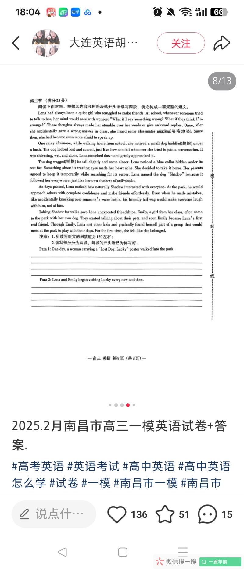 2025-06-01 高中英语作文精批20篇 6 评论 1 喜欢 分享 学霸君_447 这个人很懒,还没有简介 查看TA的全部内容 +关注 一直学霸 去发现更多有趣内容 微信扫码打开一直学霸小程序 体验更多「一直学霸」新功能 评论 6 狮子猫 2025-06-01 0 小作文题目有吗,可以发到评论区 作者 学霸君_447 2025-06-01 0 老师,您好!已经发在评论区了。 官方助手 2025-06-01 0 回复 学霸君_447: 好的,晚上安排 作者 学霸君_447 2025-06-01 0 不好意思,漏了小作文 小白精批 2025-06-01 0 【金山文档 | WPS云文档】 精细批改2361小 https://kdocs.cn/l/cbiO6kvRcGvh 小白精批 2025-06-01 0 【金山文档 | WPS云文档】 精细批改2361大 https://kdocs.cn/l/cvrXZHGF8w7N 我也来讲两句