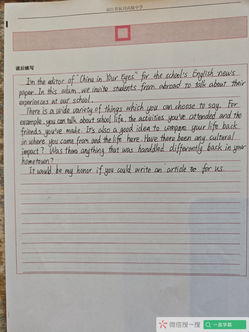 2025-07-25 高中英语作文精批20篇 1 评论 0 喜欢 分享 呢空 这个人很懒,还没有简介 查看TA的全部内容 +关注 一直学霸 去发现更多有趣内容 微信扫码打开一直学霸小程序 体验更多「一直学霸」新功能 评论 1 官方助手 2025-07-25 0 已批改,4篇 我也来讲两句