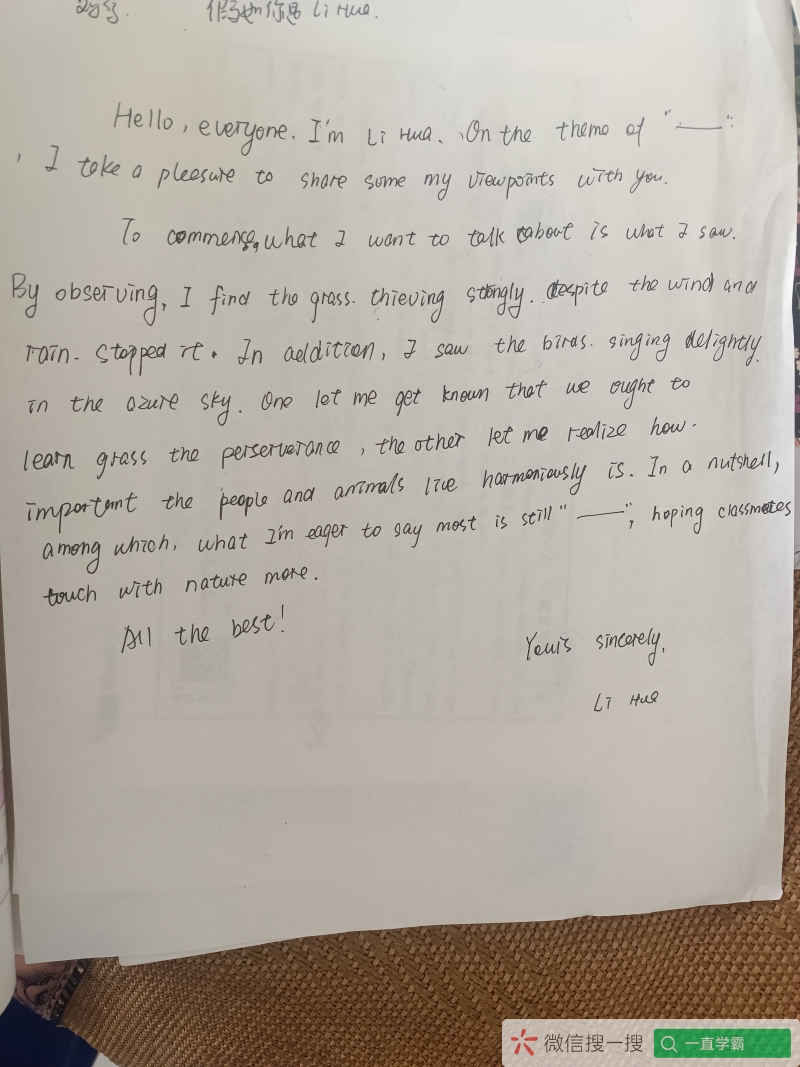 2025-08-30 英语作文批改润色半年 1 评论 0 喜欢 分享 blyth 这个人很懒,还没有简介 查看TA的全部内容 +关注 一直学霸 去发现更多有趣内容 微信扫码打开一直学霸小程序 体验更多「一直学霸」新功能 评论 1 小助理 2025-08-31 0 已批改,3篇,点击班级上方的下载报告 我也来讲两句