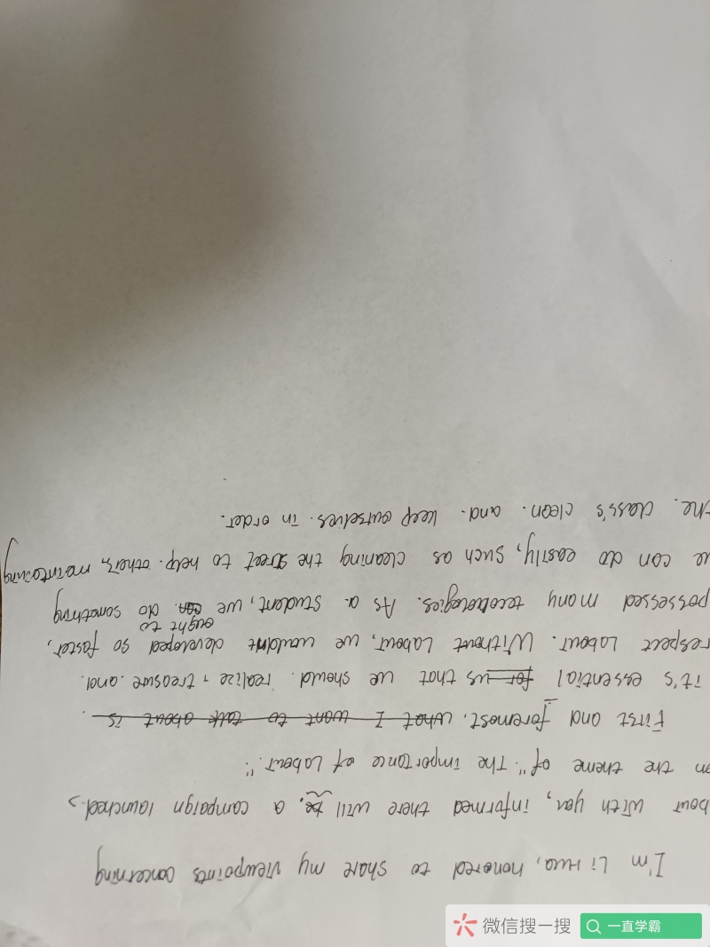 2025-09-15 英语作文批改润色半年 3 评论 0 喜欢 分享 blyth 这个人很懒,还没有简介 查看TA的全部内容 +关注 一直学霸 去发现更多有趣内容 微信扫码打开一直学霸小程序 体验更多「一直学霸」新功能 评论 3 小助理 2025-09-16 0 这篇作文重新拍一下,有部分没拍到 小助理 2025-09-16 0 已批改,2篇,剩下的2篇,1篇看不清,1篇每拍完整 小助理 2025-09-16 0 注意书写规范,按照考试要求即可 我也来讲两句