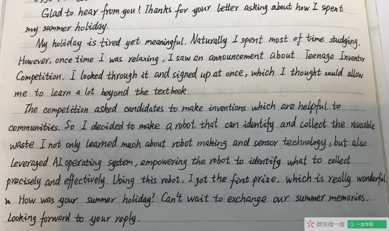 2025-09-21 高中中英文作文30篇 1 评论 0 喜欢 分享 呵呵大号 这个人很懒,还没有简介 查看TA的全部内容 +关注 一直学霸 去发现更多有趣内容 微信扫码打开一直学霸小程序 体验更多「一直学霸」新功能 评论 1 小助理 2025-09-23 0 已批改,2篇 我也来讲两句