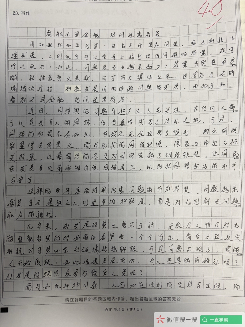 2025-10-08 高中英语语文作文半年 1 评论 0 喜欢 分享 ㅤㅤㅤㅤ 这个人很懒,还没有简介 查看TA的全部内容 +关注 一直学霸 去发现更多有趣内容 微信扫码打开一直学霸小程序 体验更多「一直学霸」新功能 评论 1 小助理 2025-10-09 0 已批改,注意书写规范 我也来讲两句