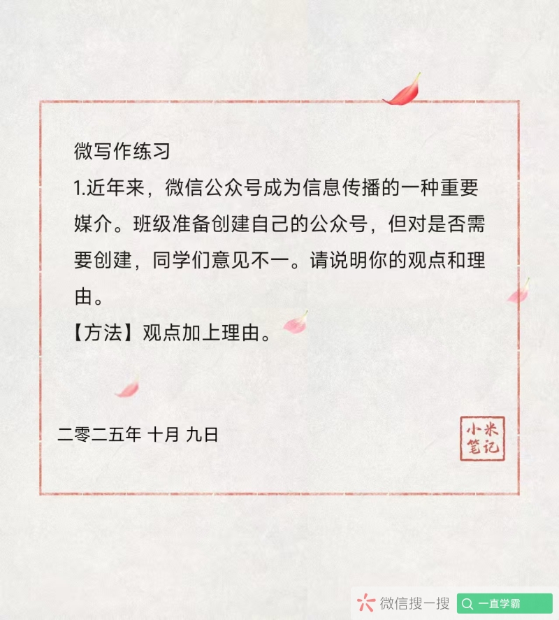 2025-10-09 高中英语语文作文20篇 1 评论 0 喜欢 分享 高三牲 这个人很懒,还没有简介 查看TA的全部内容 +关注 一直学霸 去发现更多有趣内容 微信扫码打开一直学霸小程序 体验更多「一直学霸」新功能 评论 1 小助理 2025-10-10 0 已批改 我也来讲两句