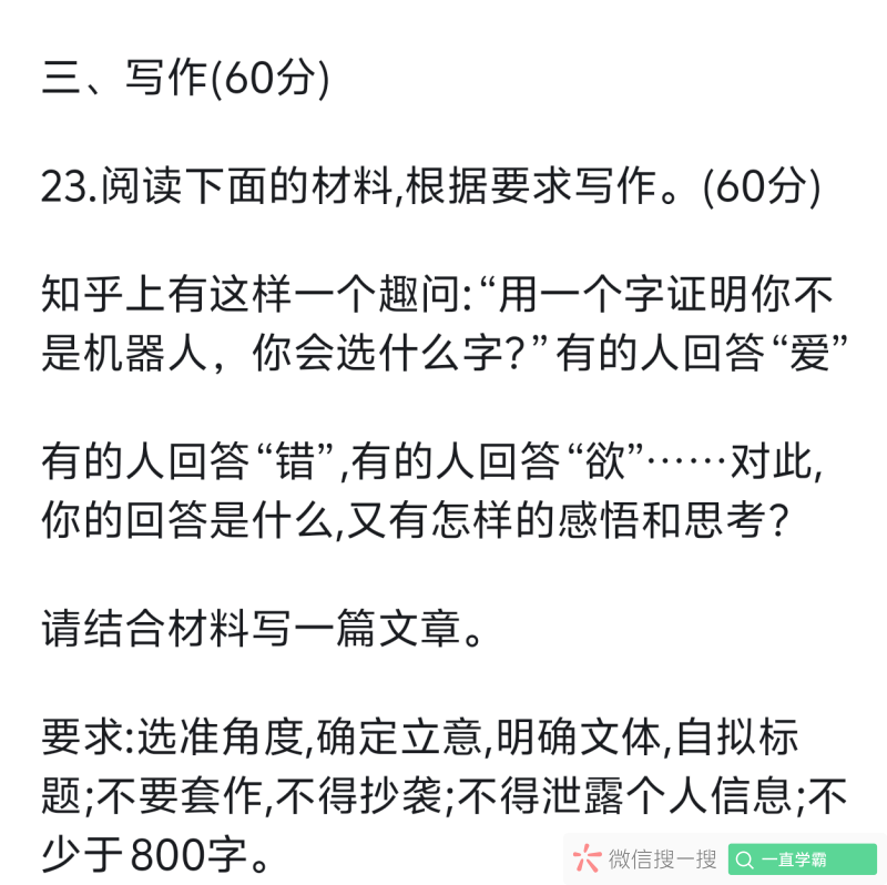 2025-11-22 高中英语语文作文20篇 1 评论 0 喜欢 分享 control 这个人很懒,还没有简介 查看TA的全部内容 +关注 一直学霸 去发现更多有趣内容 微信扫码打开一直学霸小程序 体验更多「一直学霸」新功能 评论 1 小助理 2025-11-24 0 已批改 我也来讲两句
