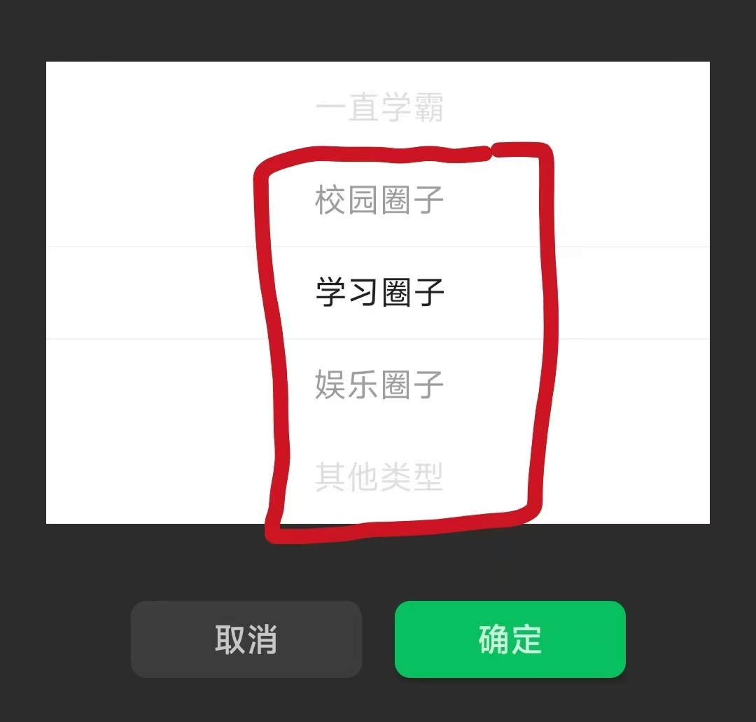 *创建圈子选择类型到时候,一直下滑,只能在这四个里面选: