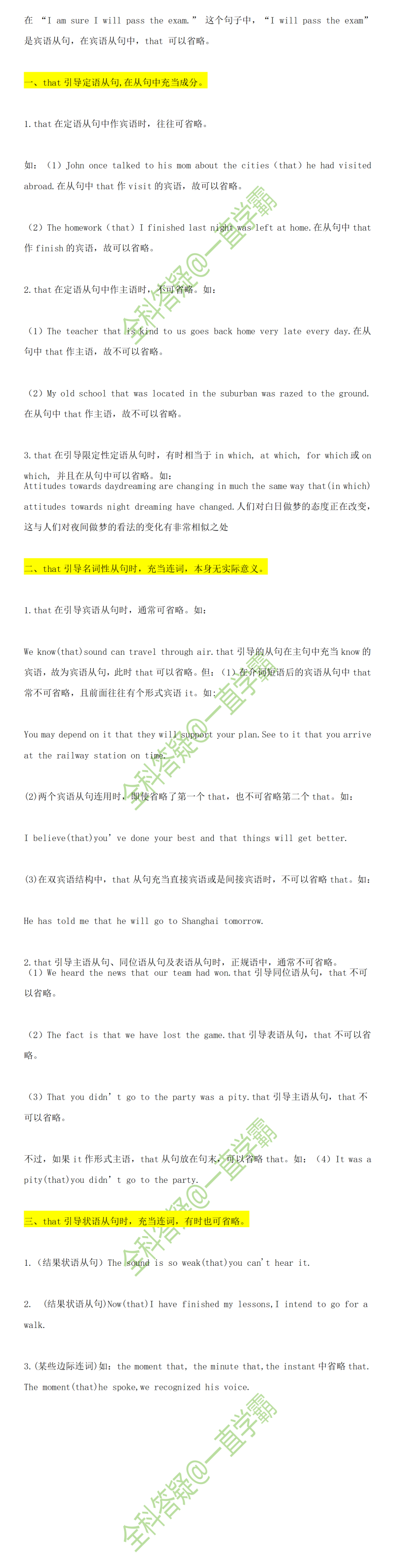2024-09-29 高中英语特价答疑 4 评论 0 喜欢 分享 我要读高十 这个人很懒,还没有简介 查看TA的全部内容 +关注 一直学霸 去发现更多有趣内容 微信扫码打开一直学霸小程序 体验更多「一直学霸」新功能 评论 4 班主任 2024-09-29 0 第一问,第二问,回复 班主任 2024-09-29 0 一个句子只能有一个主语,一个谓语。简单句容易理解,只能有一套主谓宾,有从句的时候,每个从句只能有一套主谓宾(即使部分情况可以省略,但是将省略部分复原后,只能有一套主谓宾) 班主任 2024-09-29 0 第四问,看句子缺什么,先看主谓宾,再看定状补,每个句子单独看(主句,从句) 班主任 2024-09-29 0 第五问 我也来讲两句