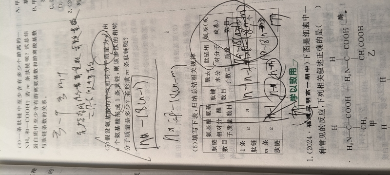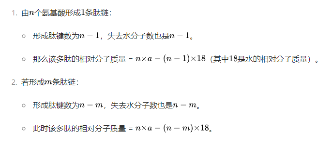 互动,(3)相当于上面的引申:n肽;(n-1)个肽键;(n-1)个水分子。形成肽键数为(n-m)个;失去水分子数为(n-m)个。肽键数一失去水分子数一氨基酸数一肽链条数。