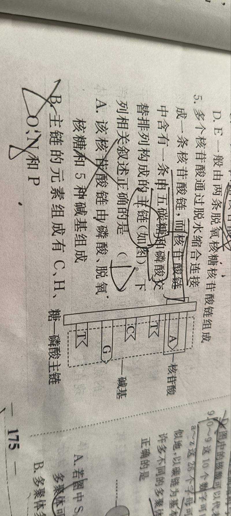 2024-10-15 高中生物特价答疑 3 评论 0 喜欢 分享 我要读高十 这个人很懒,还没有简介 查看TA的全部内容 +关注 一直学霸 去发现更多有趣内容 微信扫码打开一直学霸小程序 体验更多「一直学霸」新功能 评论 3 狮子猫 2024-10-16 0 主链由五碳糖和磷酸交替排列构成,其元素组成只有 C、H、O、P,没有 N 狮子猫 2024-10-16 0 请认真看图哈,图中有文字明确标注了——该多核苷酸链由磷酸、脱氧核糖和 4 种碱基组成,而不是 5 种 狮子猫 2024-10-16 0 由于碱基只有 4 种,所以该核苷酸链中只有 4 种核苷酸 我也来讲两句